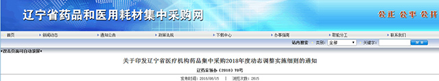 動態(tài)調(diào)整方式:對截至到2018年8月14曰通過國家仿制藥質(zhì)量和療效一致性評價的藥品 (以國家藥品監(jiān)督管理局公告為準)和國家談判藥品的仿制藥、已在遼寧省藥品和醫(yī)用耗材集中采購平臺掛網(wǎng)采購的藥品, 實行參考價掛網(wǎng)采購。