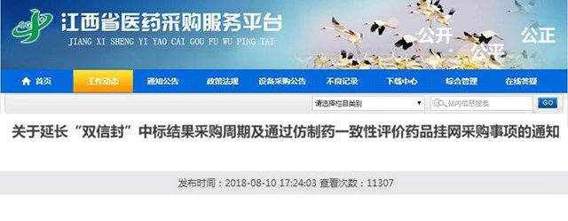 8月10日,江西省發(fā)布《關(guān)于延長“雙信封”中標結(jié)果采購周期及通過仿制藥一致性評價藥品掛網(wǎng)采購事項的通知》,對通過一致性評價的藥品采購做出了政策支持: