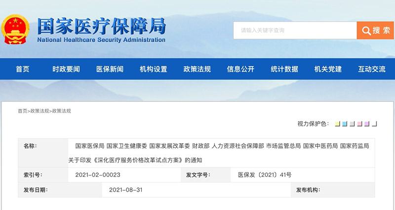 8月31日, 國家醫(yī)保局等八部門聯(lián)合印發(fā) 《深化醫(yī)療服務(wù)價格改革試點(diǎn)方案》的通知(醫(yī)保發(fā)〔2021〕41號,以下簡稱《方案》)。