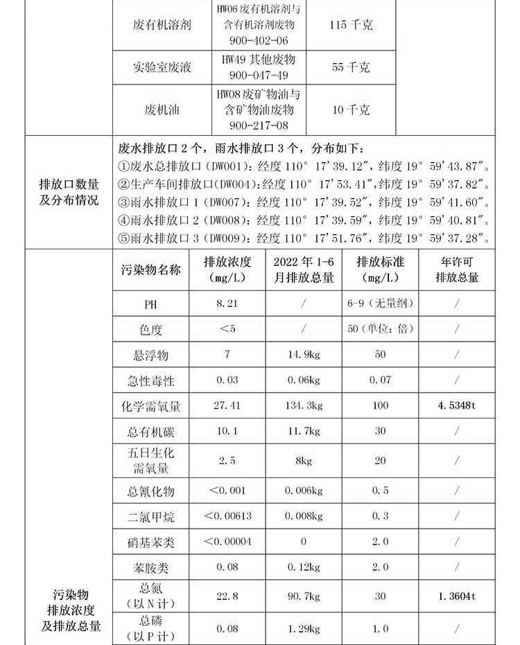 海南中和藥業(yè)股份有限公司2022年??谑兄攸c排污單位環(huán)境信息公開表