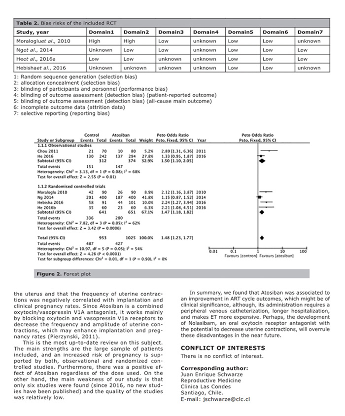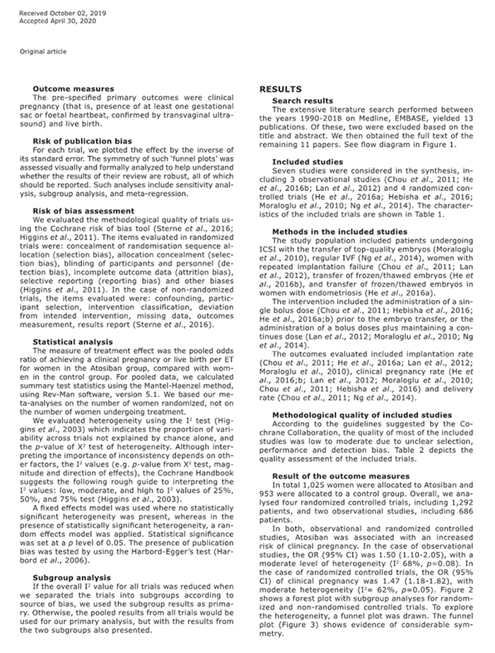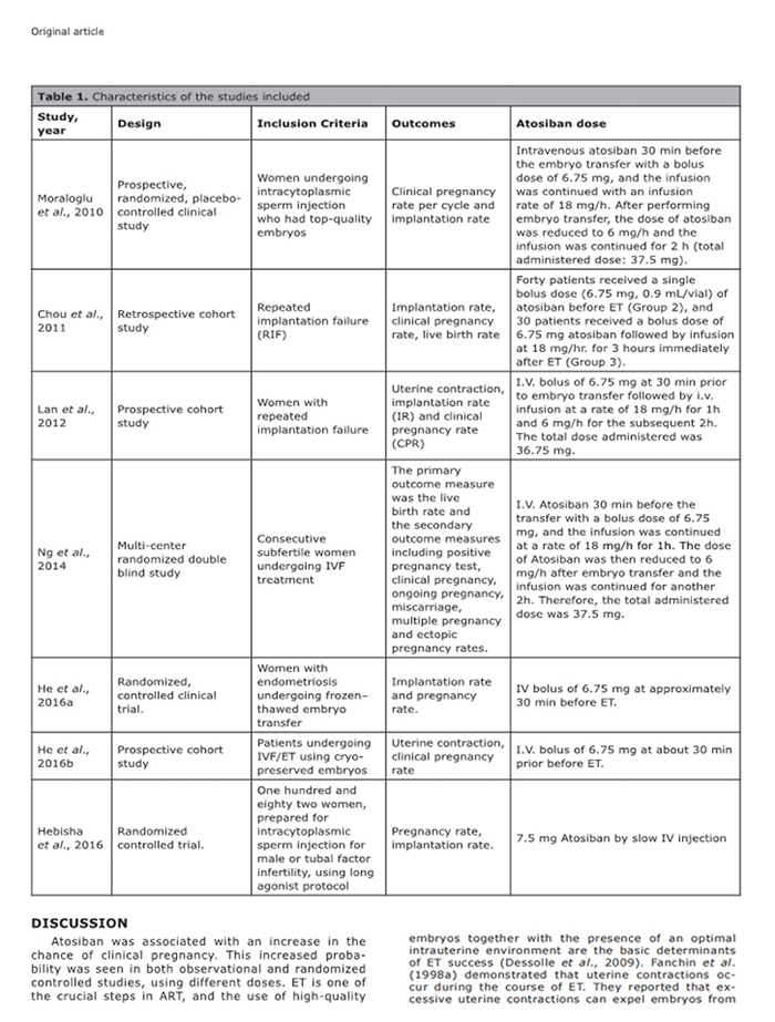 結(jié)論:阿托西班似乎可提高接受胚胎移植婦女的臨床妊娠率。